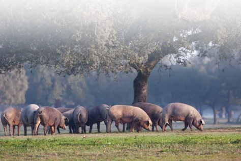 Todos los animales viven en Régimen Extensivo, con gran movilidad para el crecimiento donde perciben el microclima de Extremadura, origen de calidad del Ibérico. Alimentación principal a base de piensos naturales, hierbas, raíces y bellotas.